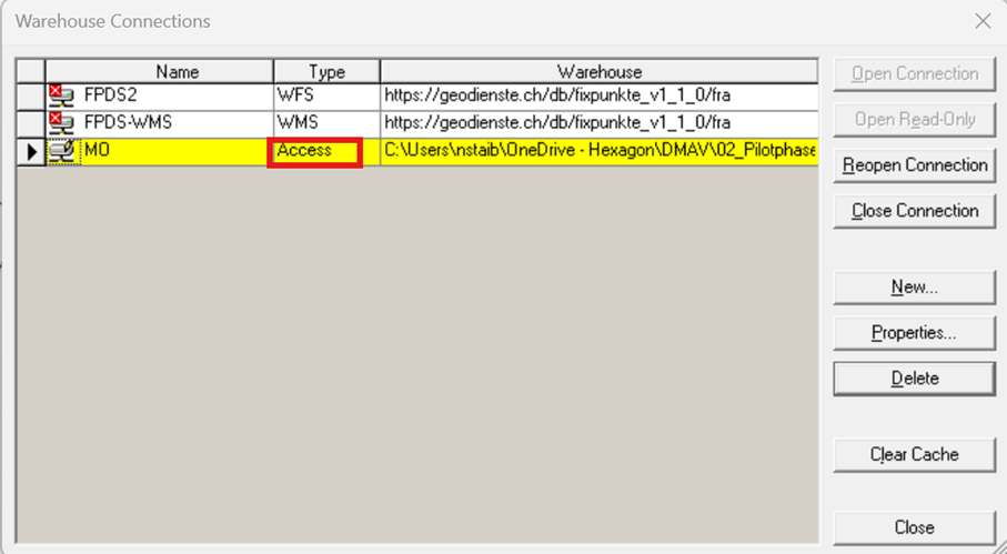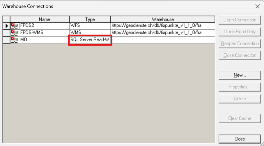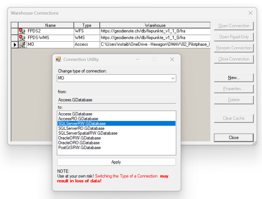 Verbindungstyp eines Warehouses in einem Geoworkspace ändern